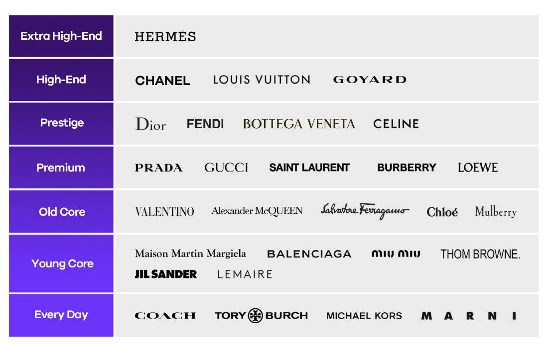 트렌비라는 명품을 판매하는 유명 플랫폼에서 판매 데이터 기반으로 지갑의 순위를 아래와 같이 나열했습니다. 이는 최대 매출액과 검색의 순위가 반영된 결과인데요. 제일 위에 보이시는 Extra High End부터 최하단의 Every Day(즉 매일 사용하는) 순위가 있습니다. 각 순위별 대표 지갑들에 대해서 알아보도록 하겠습니다.