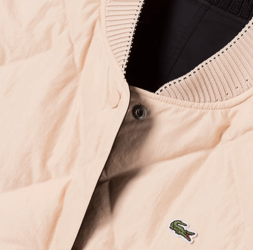 리버시블 점퍼로 해당 용어의 의미는 점퍼를 양면으로 입을 수 있다는 것으로 이해하시면 됩니다. 라코스테만이 가지는 감각적인 배색 효과로 한 가지 제품으로 두 가지의 스타일을 연출할 수 있으며, 활용도가 높은 제품이라 할 수 있겠습니다. 겉은 다이아 퀼팅 효과로 고급스러운 자태를 뽐내는 것이 특징입니다. 색상의 조합은 인디핑크와 블랙 제품이 있고, 카키와 네이비 제품이 있습니다. 출시가는 499,000원입니다.