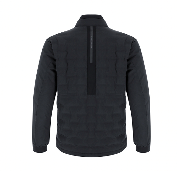전체적으로 튜브 원단을 사용하고, 소매는 솔리드 원단을 사용하여 하나의 제품에 두 가지 기술력이 들어간 하이브리드형의 구스다운입니다. 튜브 소재의 역할로는 다운이 빠져나가는 것을 방지하여 보온성을 극대화하는 것이 특징인데요.