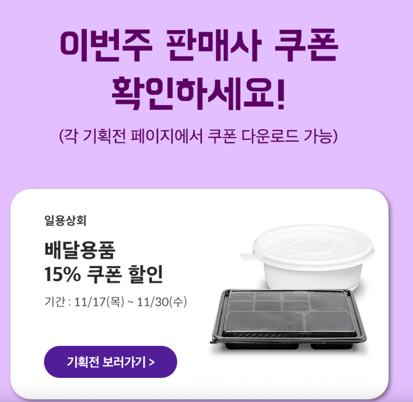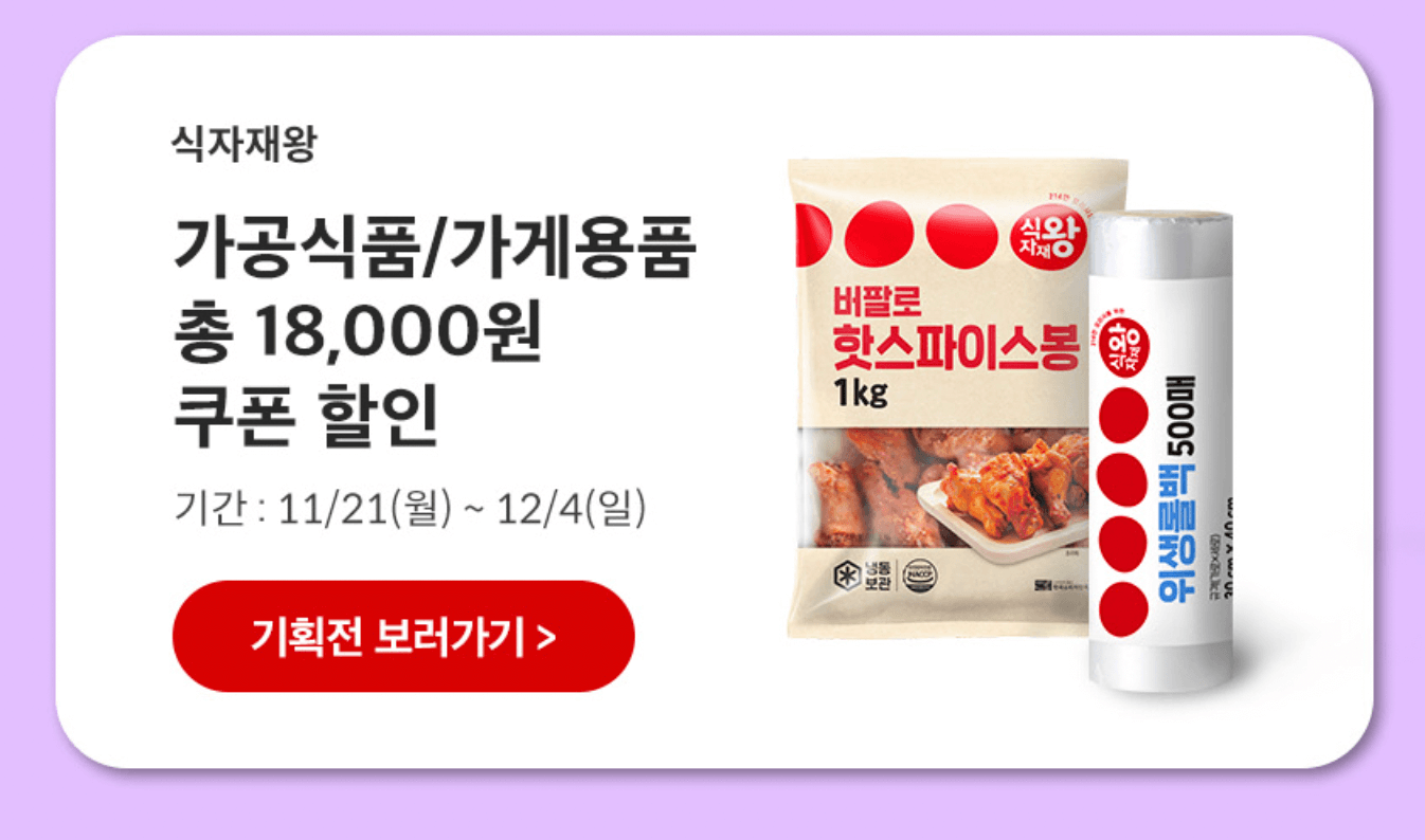 배달의민족이 쿠폰 이벤트를 많이 하는 걸 알고 계시죠? 배민 상회도 마찬가지로 매일, 매주 발행되는 쿠폰 및 이벤트들이 즐비하게 노출되고 있습니다. 특히 제품의 항목별로 기획전을 마련하여 쿠폰을 발행하거나 초특가로 진행하는 행사가 특징이랍니다. 마트에 가시지 않더라도 방구석에서 온라인 쇼핑으로 간편하게 용품 관리를 할 수 있으니 정말 좋은 시대에 살고 있는 것을 느낄 수 있습니다. 정가에 구매보다는 이벤트 기간을 노려 알뜰하게 매장을 운영해 보시는 건 어떨까요.