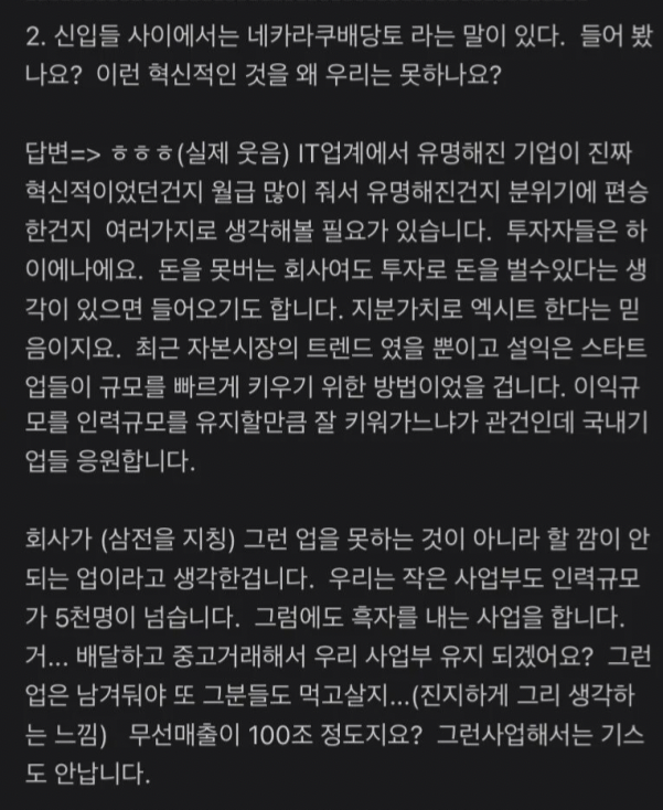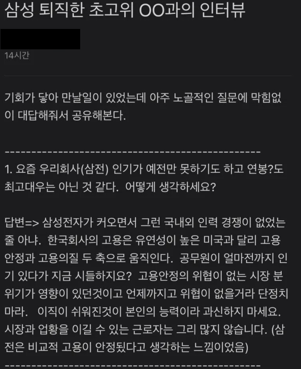 삼성을 퇴직한 초고위 OO과의 인터뷰