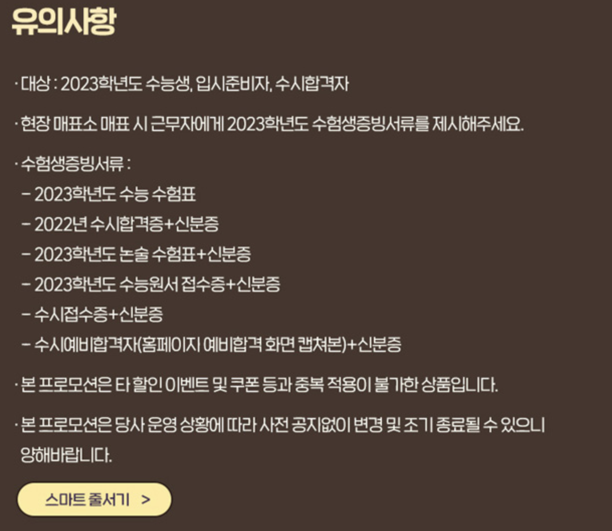 수능 수험표 할인 및 수험생 전용 이벤트 총정리