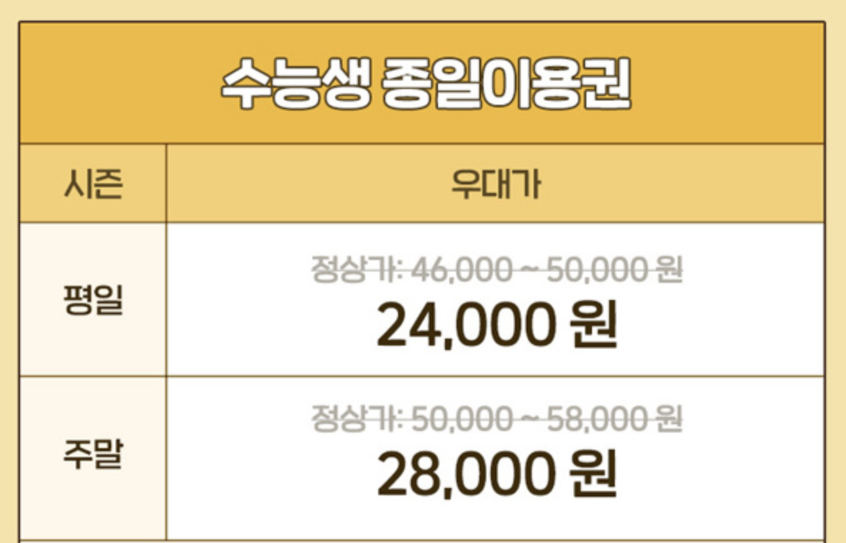 에버랜드 수능생 특별우대 이벤트
