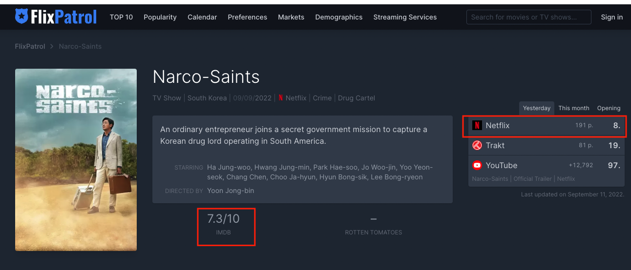 이 포스팅은 2022년 9월 기준의 flixpatrol 공식 사이트를 참고한 글입니다. 업데이트가 필요한 정보에 대해서는 댓글 주시면 바로잡도록 하겠습니다.