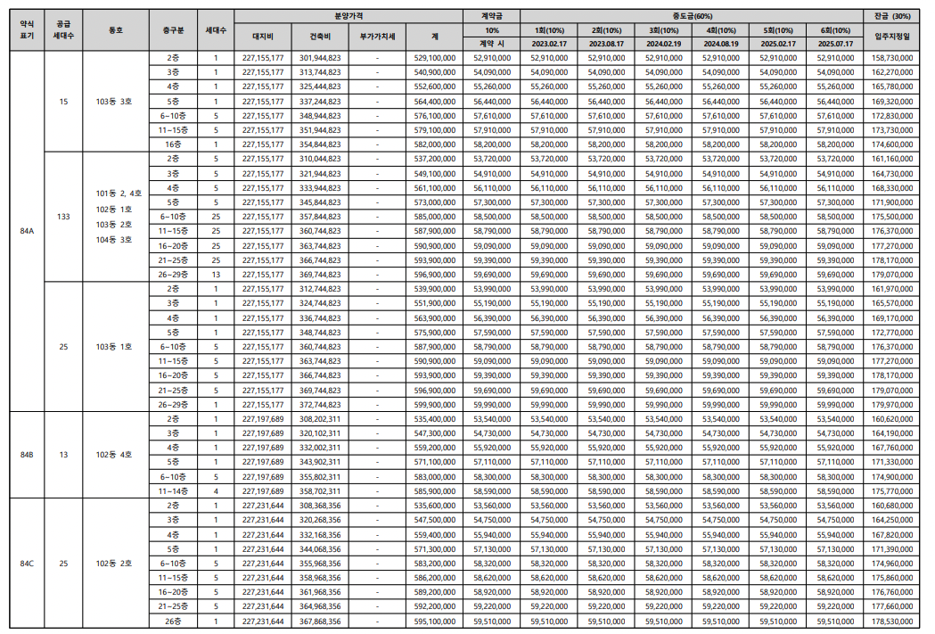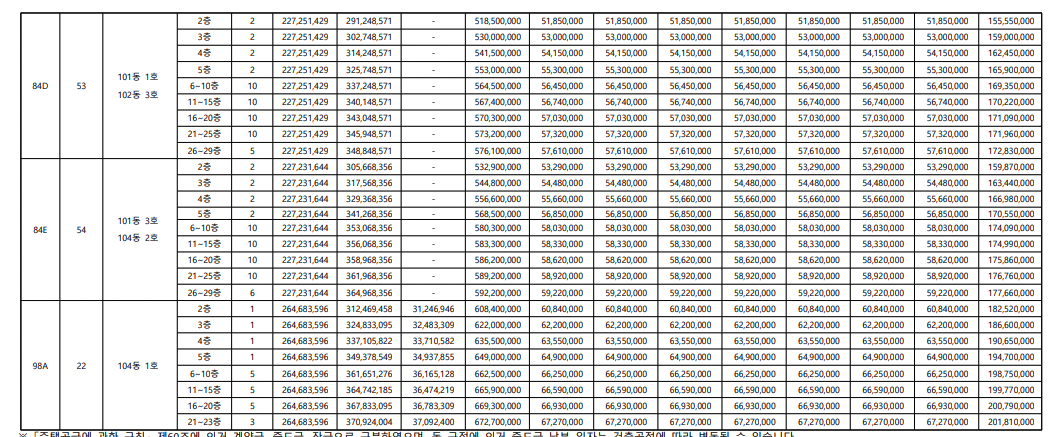 | 주택형 | 공급금액(최고가 기준) |