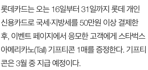 세금 50만 원 이상 결제 시, 스타벅스 아메리카노 1잔 증정