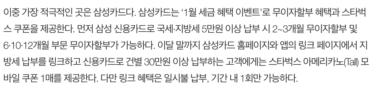 이후 30만 원 이상 결제 시, 스벅 1잔 증정하는 지방세 관련문구가 있는 링크를 혜택 추가하기하여 링크해 주세요. 이후 해당 삼성카드로 지방세를 납부하시면 완료됩니다. 아주 쉽지요?