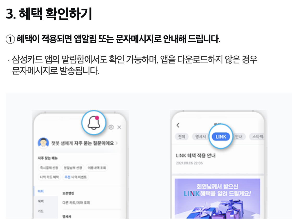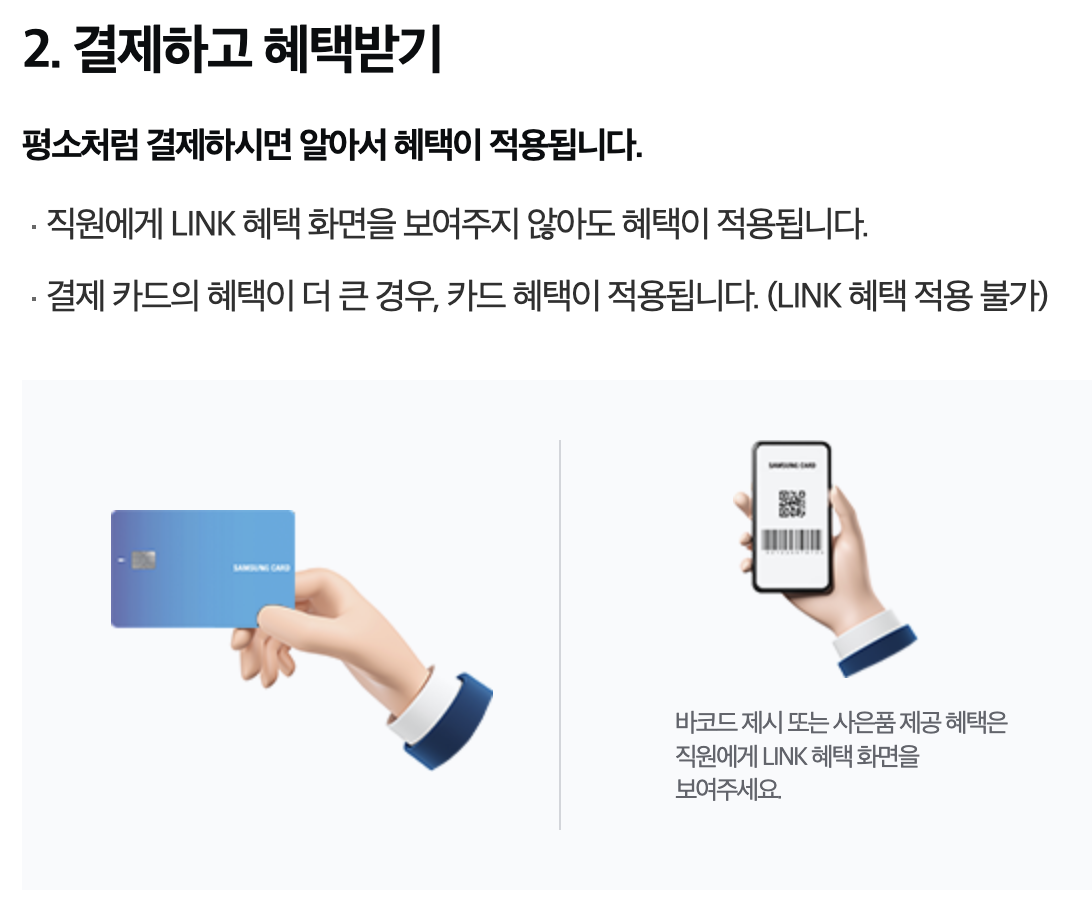 삼성카드 링크라는 것을 활용해야 하는데요. 아주 쉬우니 따라하시길 바랍니다. 먼저 삼성카드 앱을 키셔서, 링크라는 메뉴에 접속해 주세요.