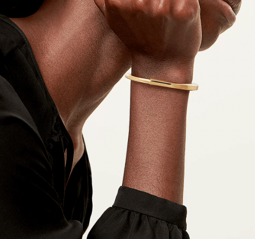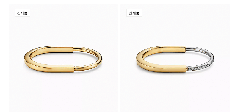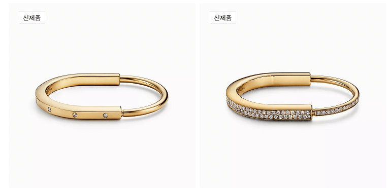 처음으로 추천드리는 모델은 티파니의 서로에 대한 유대감이 절실하게 표현된 뱅글이라는 모델입니다. 색상은 옐로우 골드이며, 가격은 9,950,000원입니다.