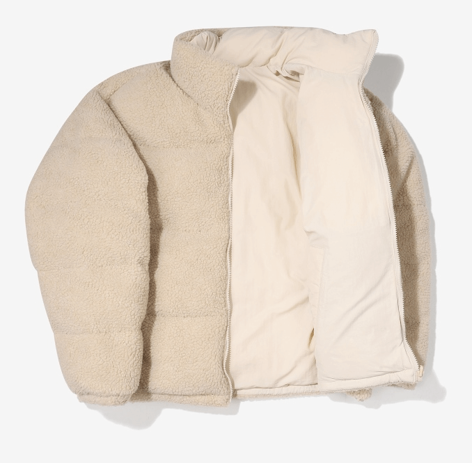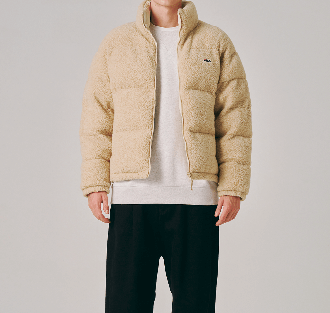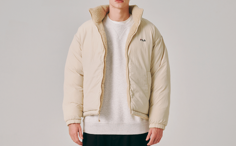 휠라에서 출시한 인기 제품 중 하나인 보아 리버시블 패딩입니다. 양면으로 입을 수 있는 것이 특징이며, 특히 안감은 보아 플리스 처리되어 착용 시 따뜻한 보온성 효과가 극대화가 되는 제품입니다. 한 겨울에도 착용이 가능하고요.