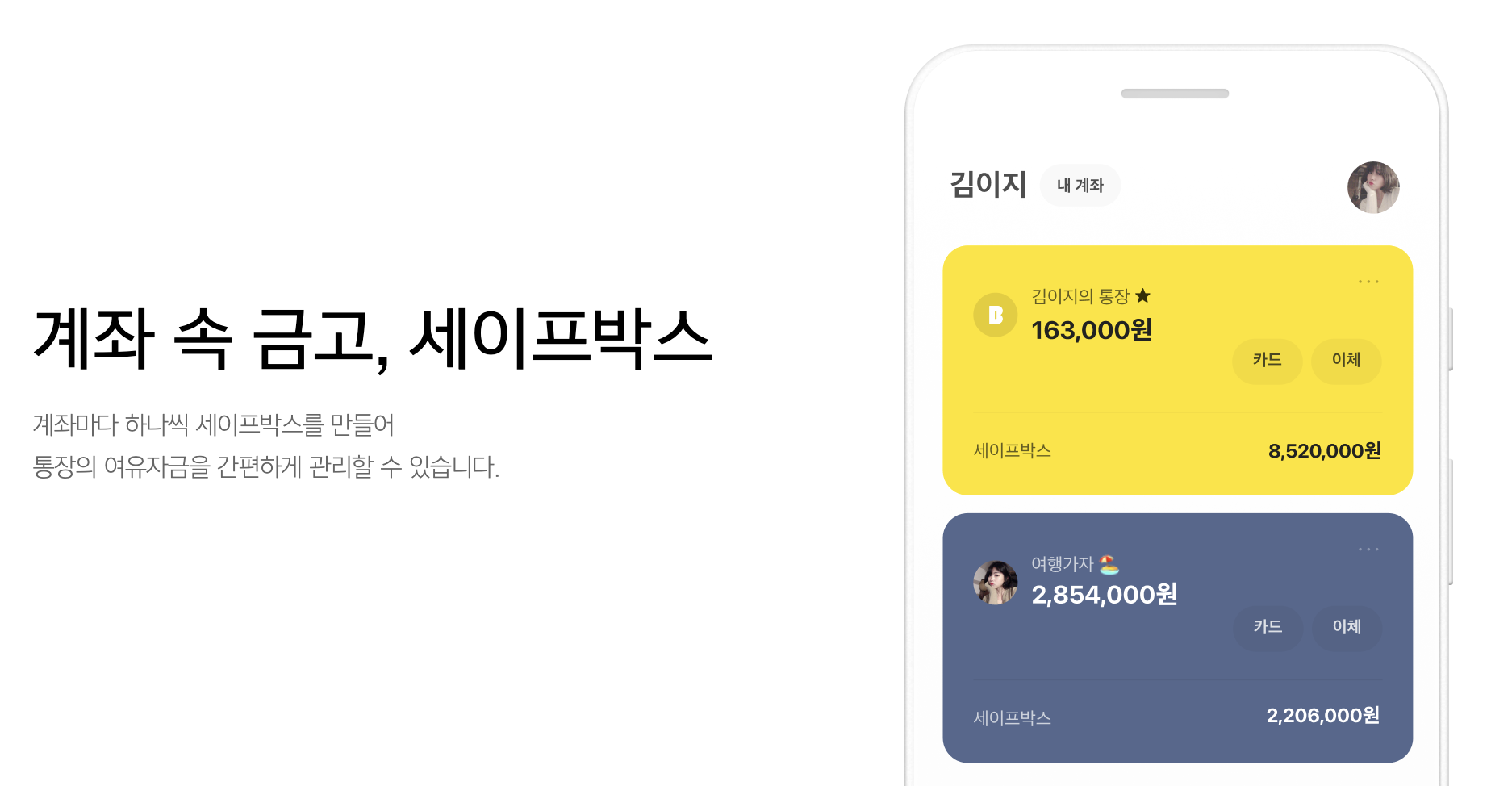 카카오의 대표 은행인 카카오뱅크는 세이프박스라는 이름으로 파킹 통장 서비스를 제공합니다. 해당 상품은 하루만 맡겨도 연 2.6%를 지급하며, 한도는 최대 1억원까지만 제공합니다.