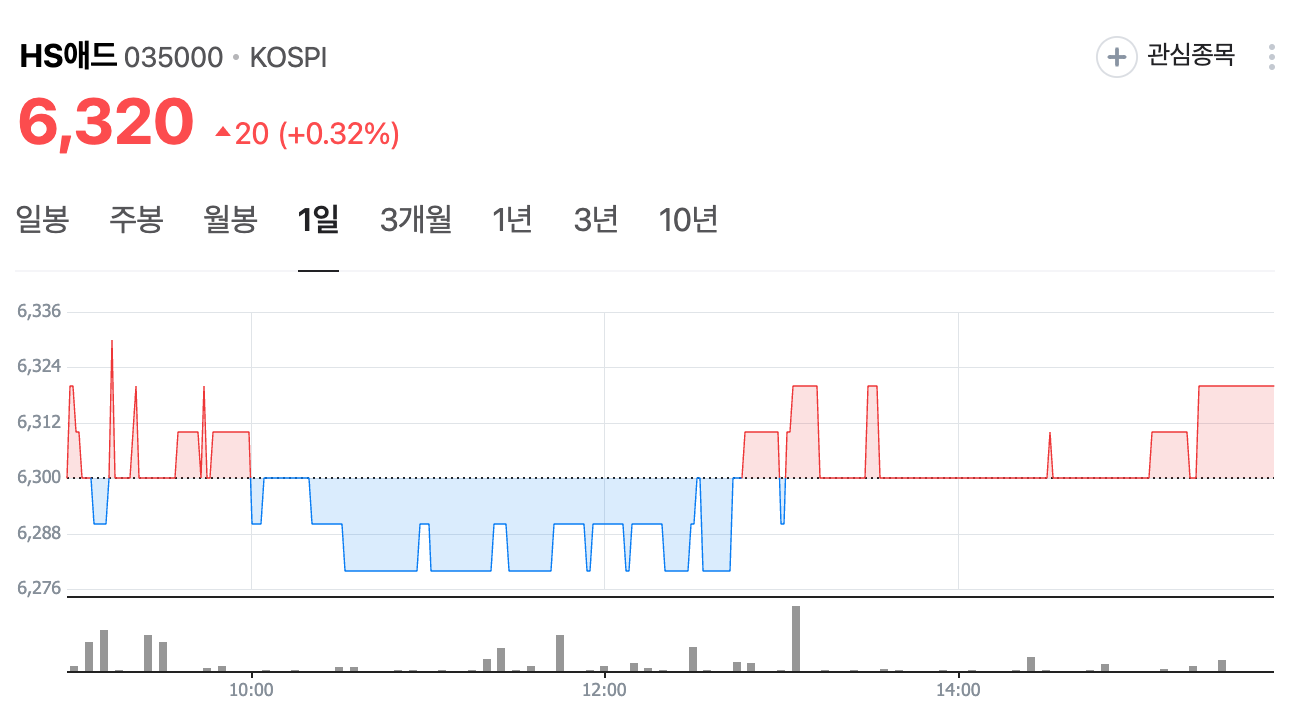 현재 HS애드의 주가는 6,320원으로, 전일 대비 +20원 상승 했습니다. 주요 주주로는 LG 외 1인이 있으며, 이들은 총 35.00%의 지분을 보유하고 있습니다. HS애드의 시가 총액은 1057억 원이며, 발행 주식수는 16,567,409주입니다. 외국인 보유 비중은 33.28%이고, 장중 거래량은 15,134주를 기록했습니다. 매출액은 863억 원에 달합니다.