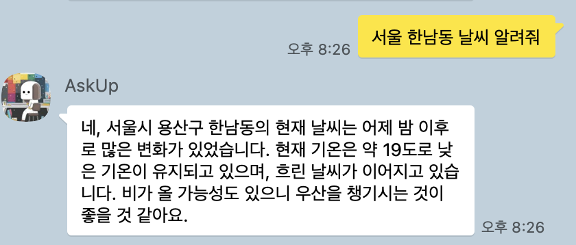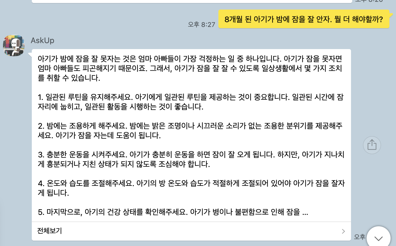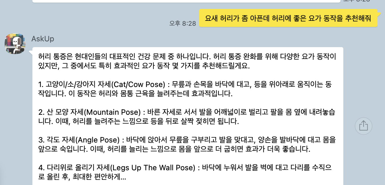 chatGPT 카카오톡 AskUp 특이사항