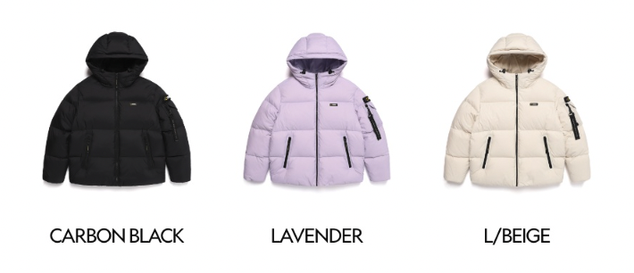 보라색 계열의 빵빵한 스타일로 나온 제품입니다. 해당 제품은 모자가 달려 있으며, 앞서 추천드린 경량 패딩보다는 보다 따뜻한 패딩의 역할을 톡톡히 할 수 있다고 생각합니다. 충전재로써는 솜털 거위 80%, 깃털 20%이며 내부는 발열 안감을 사용하여 보온성이 아주 높도록 장시간 유지할 수 있는 것이 큰 특징입니다. 제품의 출시가는 319,000원입니다.